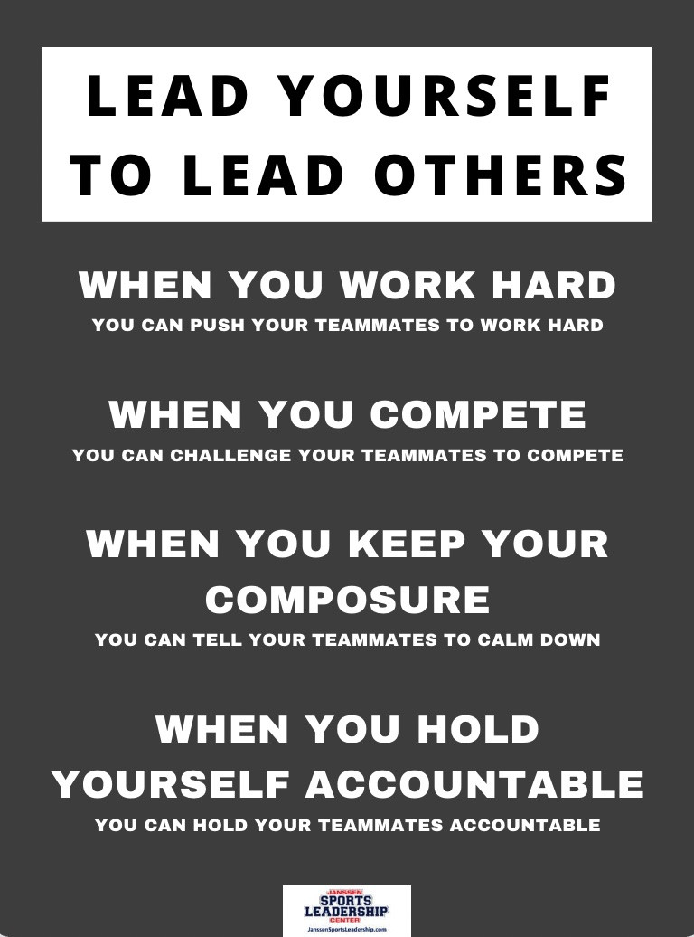 Get 5 powerful posters that teach your athletes how to effectively lead themselves. Perfect for emerging leaders who need to earn the respect and trust of their teammates and coaches. Only $59.95 for these 5 posters: